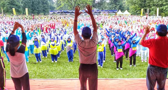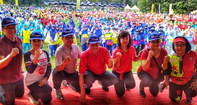 Sekretaris Daerah (Sekda) Kota Bogor Ade Sarip Hidayat ikut ambil bagian dan larut dalam lomba senam serta jalan sehat diabetes bersama ribuan warga di Kebun Raya Bogor, Minggu (11/11/2018).