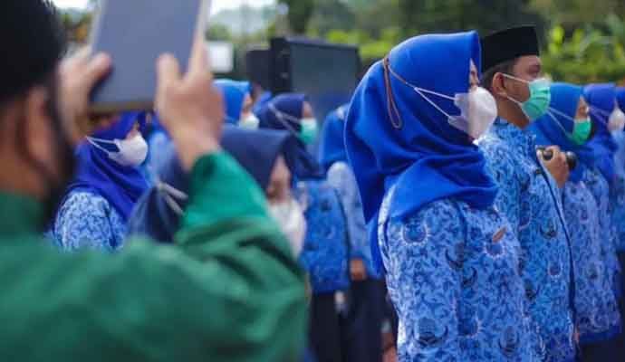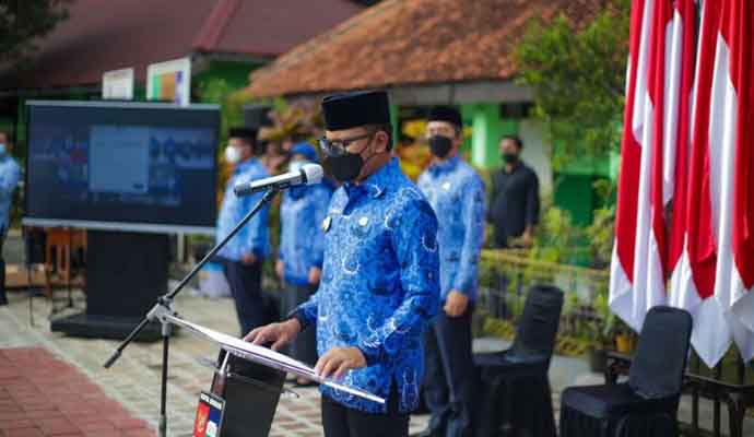 INILAHONLINE.COM, BOGOR — Wali Kota Bogor, Bima Arya secara langsung memimpin pengambilan sumpah/janji Pegawai Negeri Sipil (PNS) berlokasi di SDN Cimahpar 3 Kota Bogor, yang juga diikuti tiga lokasi lainnya secara daring, Selasa (25/1/2022). Tiga lokasi lain pengambilan sumpah dan janji dilakukan di kantor Dinas Kesehatan (Dinkes), Dinas Pendidikan (Disdik) dan Kecamatan Bogor Utara.