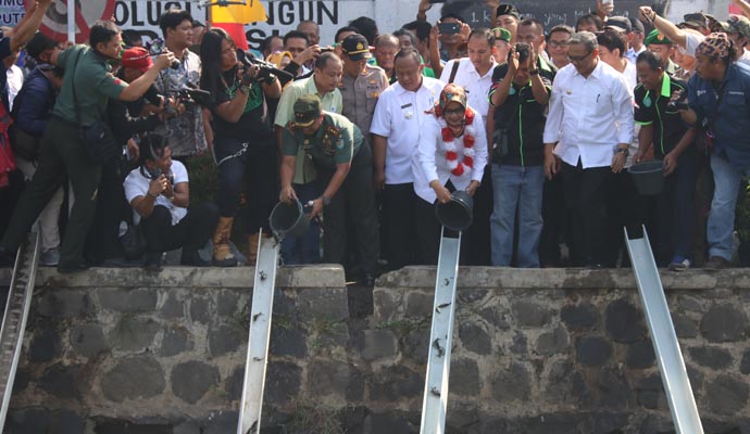 Sebelum melaksanakan kegiatan boling, Bupati dan rombongan tiba di Setu Tlanjung Udik untuk penebaran benih ikan dilanjutkan dengan peletakan batu pertama Kantor PGRI Kecamatan Gunungputri.