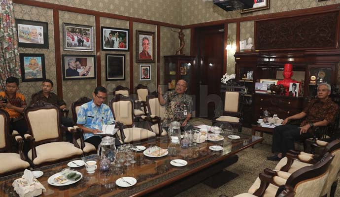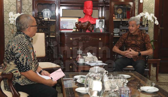 Gubernur Jateng Ganjar Pranowo saat menerima Kepala Dinas Perindustrian dan Perdagangan (Disperindag) Provinsi Jateng Arif Sambodo di Puri Gedeh, Rabu (6/3/2019) siang mengatakan, Jateng memilih pameran di Turki dan Moskow.