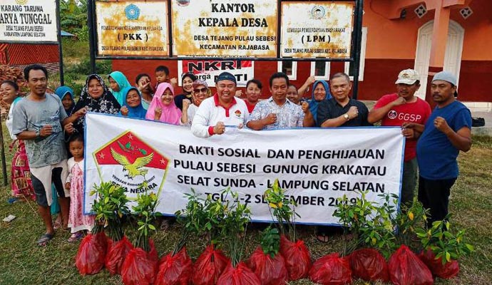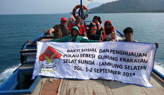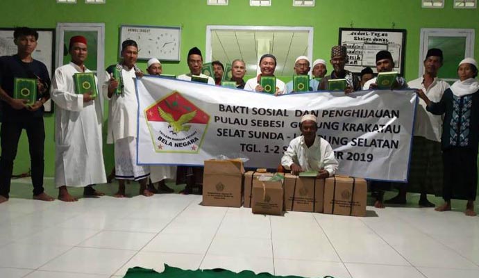 Pulau Sebesi, yang secara administratif berada di wilayah Desa Tejang, Kecamatan Rajabasa. Mereka kembali melakukan aksi bakti sosial berupa pemberian bantuan 5.500 bibit pohon termasuk bakau, Al-Quran dan Juz Amma untuk 3 masjid di pulau yang juga terdampak tsunami yang dipicu letusan Gunung Anak Krakatau di Selat Sunda, selain menghantam pesisir Banten juga Lampung.