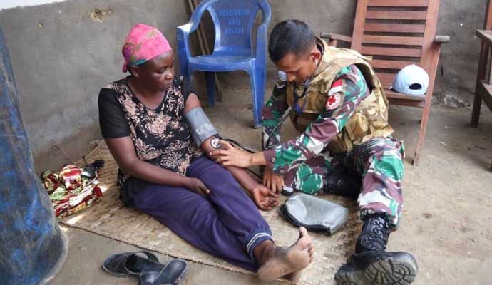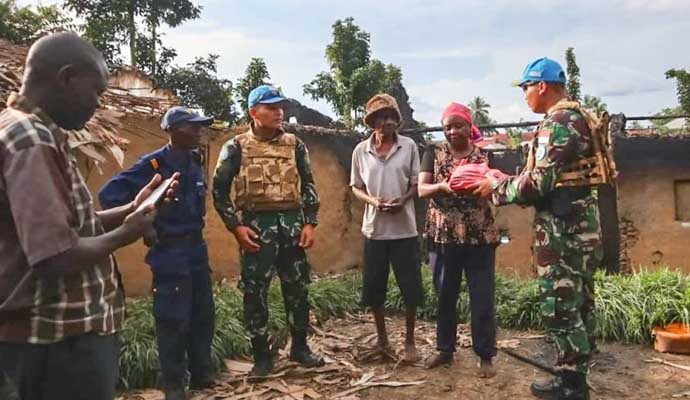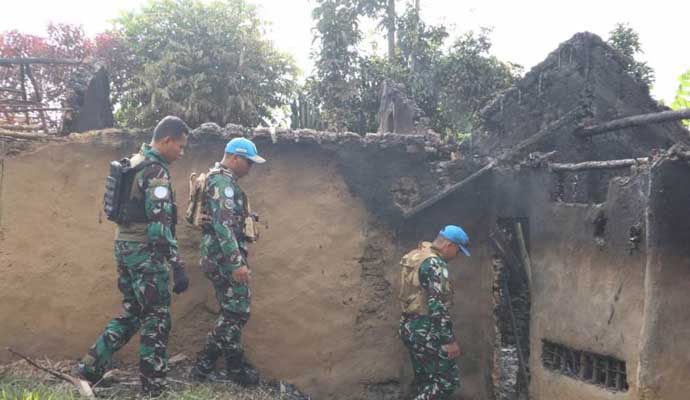 Kompi B Central Operation Base (COB) Shabunda Satgas RDB Kontingen Garuda XXXIX-C/MONUSCO dengan sigap memberikan bantuan terhadap korban kebakaran rumah di Desa Shabunda, Republik Demokratik Kongo, Selasa (23/3/2021).