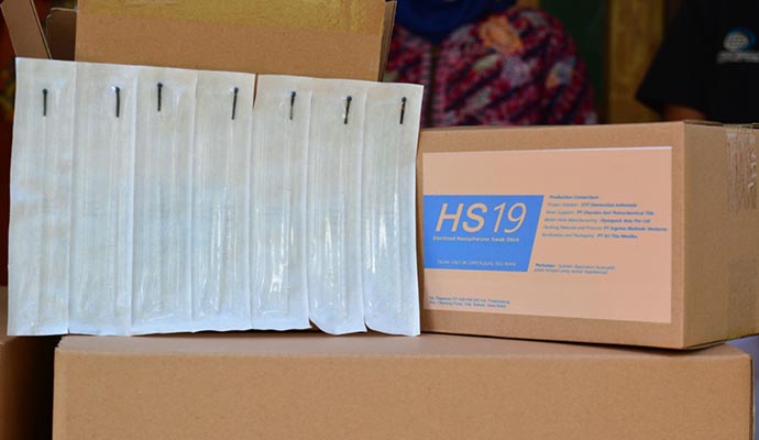 Flocked swab HS-19 pertama dibuat Mei 2020 dan terus mengalami penyempurnaan baik dari sisi produksi dan proses kerja. Flocked swab made in Indonesia HS-19 ini telah diproduksi setelah melalui tahapan riset dan pengujian dari Laboratorium Mikrobiologi FKUI, untuk memastikan produk telah aman digunakan bagi tenaga kesehatan maupun pasien.