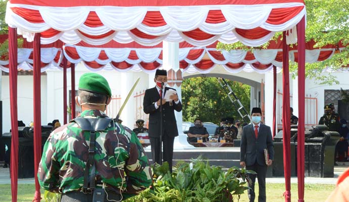 Hari Pahlawan yang diperingati sekarang ini dilaksanakan dengan protokol kesehatan karena covid-19 masih.