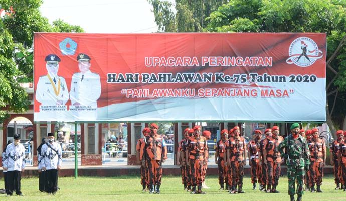 Wakil Bupati Brebes dengan lantang membacakan amanat Menteri Sosial RI yang mana Prosesi Upacara Bendera dan Mengheningkan Cipta secara serentak selama 60 detik untuk memperingati Hari Pahlawan 10 November 2020 dengan khidmat, meskipun di tengah masa pandemi Covid ini. Tentunya dengan jumlah peserta yang terbatas dan disesuaikan dengan protokol kesehatan.