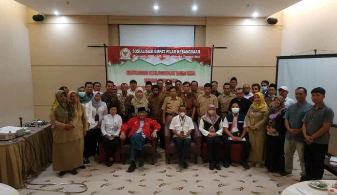 INILAHONLINE.COM, MAGELANG — Anggota DPR RI Ir Sudjadi dari PDI Perjuangan, menggelar Sosialisasi Empat Pilar Kebangsaan (Pancasila, UUD 1945, NKRI dan Bhineka Tunggal Ika). Sosialisasi diikuti Kepala desa (Kades), perangkat desa dan anggota BPD serta tokoh masyarakat tersebut, mengusung tema silaturahmi dan komunikasi untuk membangun desa yang berkeadilan.