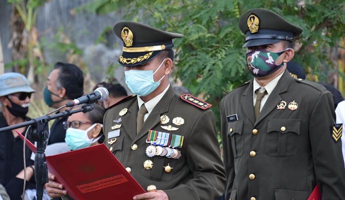 Danrem 082/CPYJ, Kolonel Inf M. Dariyanto memimpin berlangsungnya upacara pemakaman Letkol Inf Teguh Wibowo, Perwira Menengah TNI-AD yang sehari-hari mengemban tugas sebagai Kepala Seksi Intelijen Korem di TPU Sidomoro, Kecamatan Lowokwaru, Kota Malang. Rabu, 02 September 2020.