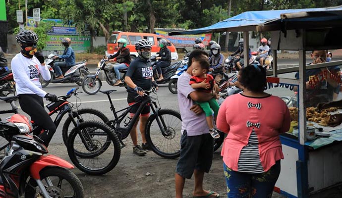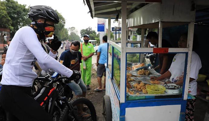 Hal itu terlihat saat Gubernur Jawa Tengah, Ganjar Pranowo ngabuburit sepedaan keliling Kota Semarang, Rabu (29/4). Sambil menunggu waktu berbuka, pihaknya melihat secara langsung penerapan PKM di Kota Semarang.