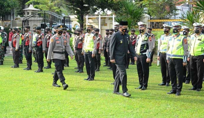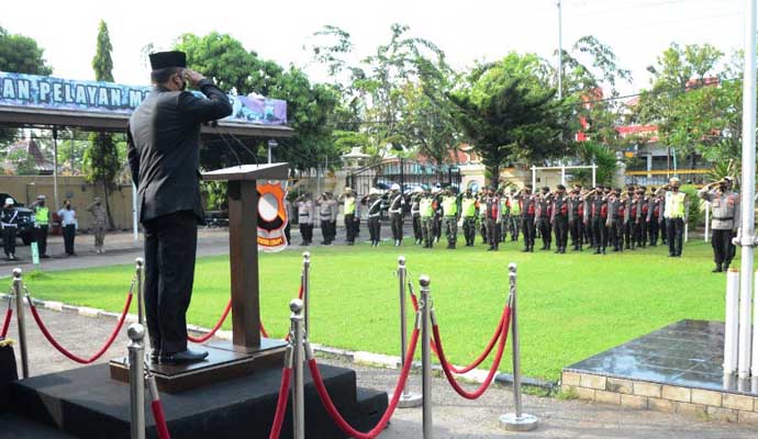 Narjo membacakan amanat Kapolri, Jenderal Polisi Listyo Sigit Prabowo, yang intinya adalah Operasi Ketupat Candi 2021, diselenggarakan secara serentak di seluruh Indonesia selama 12 hari, mulai dari tanggal 6-17 Mei 2021.