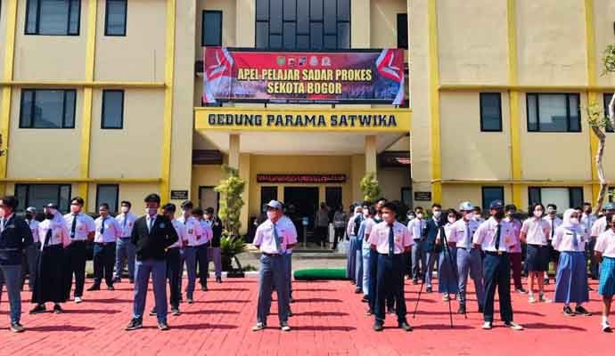 INILAHONLINE.COM, BOGOR — Puluhan pelajar setingkat SMP dan SMA, ketua OSIS, komite sekolah, orang tua, hingga satgas berkumpul dalam Apel Pelajar Sadar Protokol Kesehatan (Prokes) se-Kota Bogor di halaman Mapolresta Bogor Kota, Rabu (6/10/2021).
