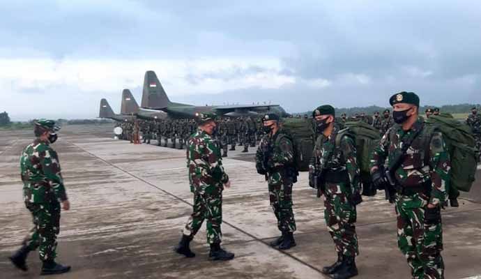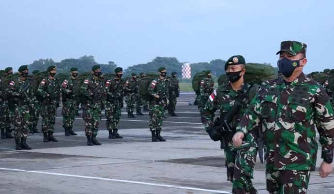 Asisten Operasi (Asops) Panglima TNI Mayjen TNI Tiopan Aritonang, S.I.P., memimpin Upacara pemberangkatan 450 prajurit Batalyon Infanteri Para Raider 501/Bajra Yudha (Yonif Para Raider 501/BY) yang akan melaksanakan Satgas dalam rangka operasi Pengamanan Perbatasan (Pamtas) RI-PING Mobile selama 9 bulan di wilayah Intan Jaya, Papua, menggantikan Yonif Raider 400/BR yang berakhir masa tugasnya.