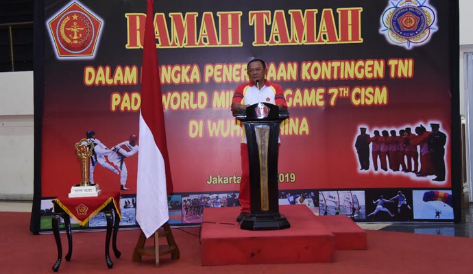 Dalam sambutan Panglima TNI yang dibacakan Asops Panglima TNI Mayjen Ganip Warsito menyampaikan bahwa kegiatan multi event 7th Military World Games 2019 di Wuhan China ini adalah multi event yang ke-3 yang diikuti oleh TNI setelah tahun 2011 di Rio De Jenairo Brazil, dan di Korea tahun 2015.