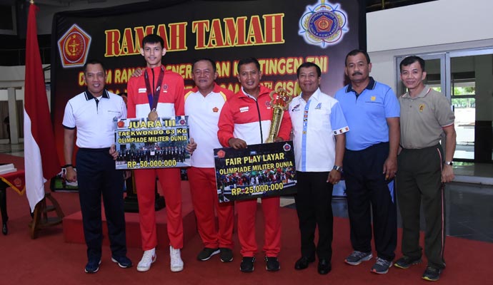 “Saya menghimbau kepada seluruh pembina olahraga baik di masing-masing angkatan maupun Mabes TNI agar tetap selalu memberikan reward kepada para atlet yang berprestasi, sehingga bisa menjadi pendorong semangat kepada prajurit lainnya yang belum berprestasi,” tutur Marsekal TNI Hadi Tjahjanto.