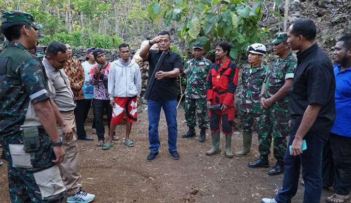 Dandim menjelaskan, jajarannya bekerjasama dengan pihak terkait lainnya untuk berusaha mengangkat air di sungai bawah tanah. Rencananya air diangkat menggunakan sistem gravitasi, air kita angkat dari kedalaman 1,2 Km dan ternyata membuahkan hasil.