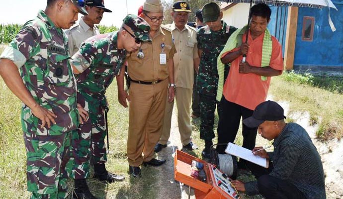 “Kami menggunakan geolistrik dalam menentukan sumber air tanah. Tujuannya adalah untuk menemukan debit air bawah tanah yang cukup besar, sehingga nantinya dapat dilakukan pengeboran oleh dinas terkait,” ucapnya di areal persawahan di samping lokasi pembangunan makadam TMMD, depan SDN Jatimulya 03 Dukuh Sigerung, Senin (22/7/2019).