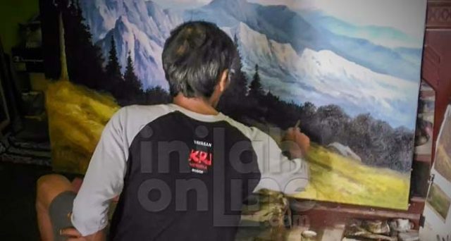 InilahOnline.com (Kota Bogor) – Salah Seorang Pelukis putra daerah Kota Bogor, R. Yan Mulyana atau yang akrab di panggil Adum (56) sering menghasilkan karya lukis yang bertemakan Sosial dan Budaya dengan mempertahankan estetika naturalis dan impresionis yang tertuang dalam kanvas lukisannya.