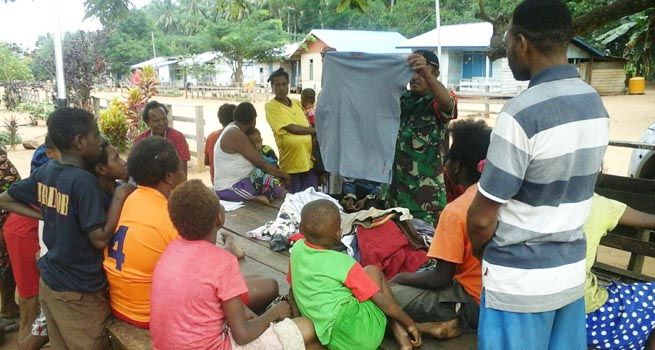 Pada kesempatan tersebut Babinsa Sertu Ahmad mengatakan komunikasi sosial yang dilakukannya, kali itu juga dimanfaatkan dengan memberikan Pakaian Layak Pakai (PLP) kepada warga kampung Wayau.