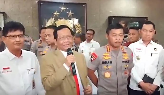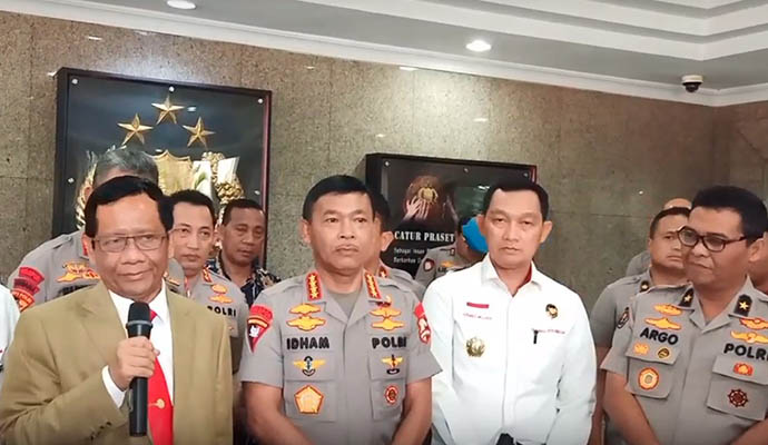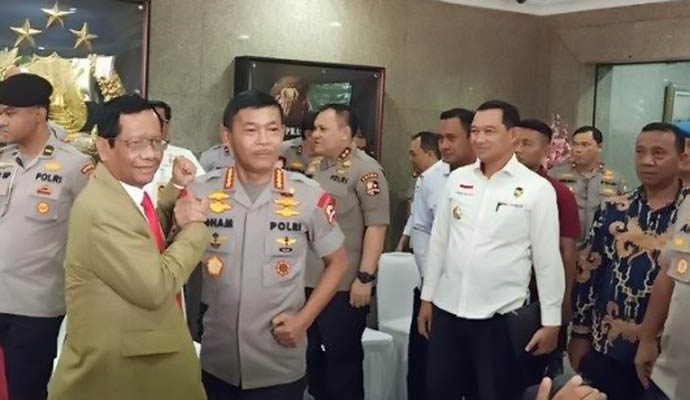 Menko Polhukam Mahfud MD melakukan pertemuan dengan Kapolri Jenderal Idham Azis di Mabes Polri. Kedatangan Mahfud MD yakni membahas persiapan pengamanan libur Natal 2019 dan Tahun Baru 2020.