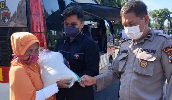 ” Hari ini Minggu 11 Juli 2021 Polres Magelang membagikan paket sembako dan beras kepada masyarakat kurang mampu dan warga terdampak Covid-19. Khusus hari ini menyasar kepada warga di Kecamatan Borobudur,” kata Muthohir.
