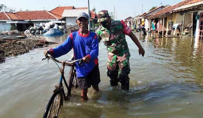 Disampaikan Danramil 01 Brebes Kodim 0713 Brebes, Kapten Infanteri Kunpriyanto melalui Babinsa setempat Sertu Sulis Kurniawan, rob yang terjadi di wilayah desa binaannya itu sudah merupakan langganan selama musim penghujan.