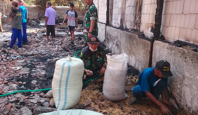 Pasca terjadinya kebakaran, yang melanda dua rumah milik Kasmijianto (54) dan Jarmi (54) yang keduanya warga Dusun Krajan, Desa/Kecamatan Kalitidu, Bojonegoro, Jawa Timur, pada Sabtu (7/9) yang lalu, anggota Koramil 0813-17/Kalitidu melaksanakan karya bakti pembersihan puing-puing akibat kebakaran.