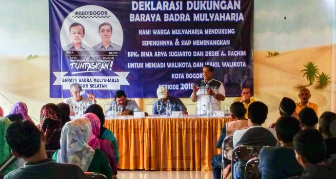 InilahOnline.com (Kota Bogor) – Baraya Badra Kelurahan Mulyaharja, Bogor Selatan menyatakan siap mendukung dan mensukseskan Pasangan Calon (Paslon) Bima Arya Sugiarto dan Dedie A Rachim untuk kembali dan melanjutkan menjadi Wali Kota Bogor dan Wakil Walikota Bogor periode 2018-2023 mendatang.