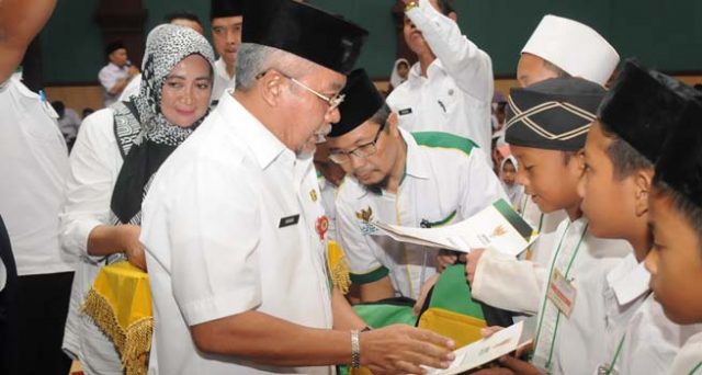 InilahOnline.com (Cibinong-Kab Bogor) – Wajah Sumringah terpancar dari 2000 anak yatim siswa -siswi SDN Se- Kabupaten Bogor yang menerima bantuan dari Bdan Amil Zakat Nasional (Baznas) Kabupaten Bogor bersama Pemerintah Kabupaten (Pemkab) Bogor, memperingati tahun baru islam 1439 Hijriah,bertempat di Gedung Tegar Beriman, Cibinong, pada Rabu, (11/10), dalam kesempatan tersebut dihadiri secara langsung oleh Sekretaris Daerah Kabupaten Bogor, Adang Suptandar,