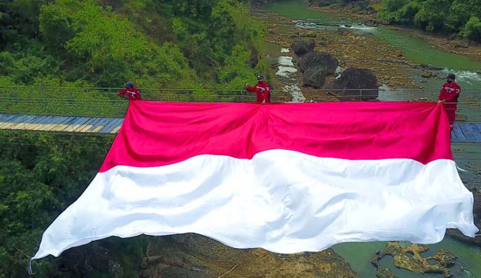 Dengan perjalanan menggunakan kendaraan 4×4 selama 3 jam untuk menembus medan terjal dan aliran sungai akhirnya rombongan tiba di jembatan gantung Desa Nangela. Di tempat ini dilaksanakan peresmian jembatan yang dilanjutkan dengan pembentangan bendera merah putih sambil menyanyikan lagu Bagimu Negeri sebagai pengingat bahwa seluruh elemen masyarakat dimanapun berada memiliki tugas dan tanggung jawab menjaga keutuhan NKRI.