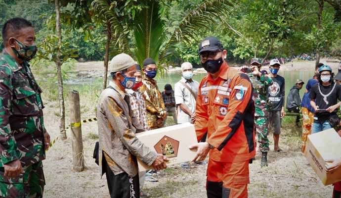 Setelah meresmikan jembatan gantung, Dankodiklatad menyapa warga setempat sambil membagikan sejumlah 350 paket sembako. Beliau juga menyempatkan diri meninjau sarana penyebrangan rakit yang selama ini digunakan di daerah tersebut.