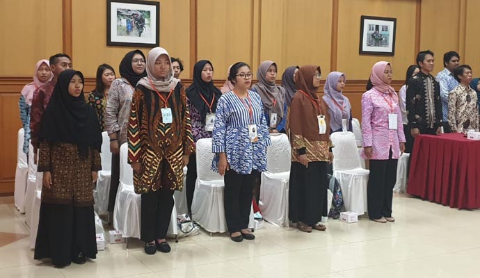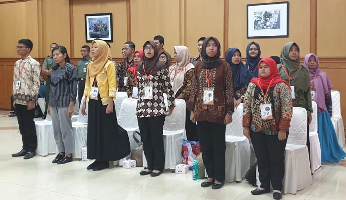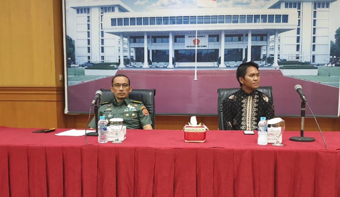 Paban 4/Komsos Ster TNI Kolonel Inf Nefra Firdaus, S.E. M.M. memberikan pembekalan kepada 34 orang pengajar muda angkatan XVIII terdiri dari 8 orang laki-laki dan 26 orang perempuan tentang peran dalam membangun wawasan kebangsaan, bertempat di aula Balai Wartawan Puspen TNI, Mabes TNI, Cilangkap, Senin (5/8/2019). (Puspen TNI)