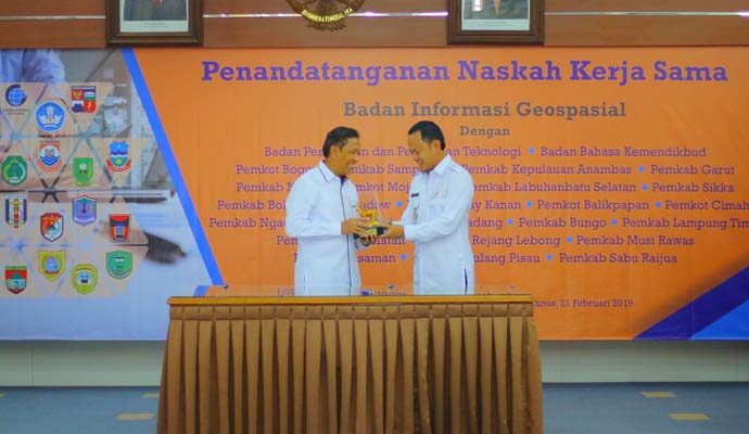 Pemerintah Kota Bogor menjadi salah satu dari 24 pihak yang ikut melaksanakan perjanjian kerjasama dengan Badan Informasi Geospasial (BIG). Acara penandatanganan kesepakatan tersebut berlangsung di Aula Utama BIG, Jalan Raya Jakarta-Bogor KM 46, Cibinong, Kamis (21/2/2019).