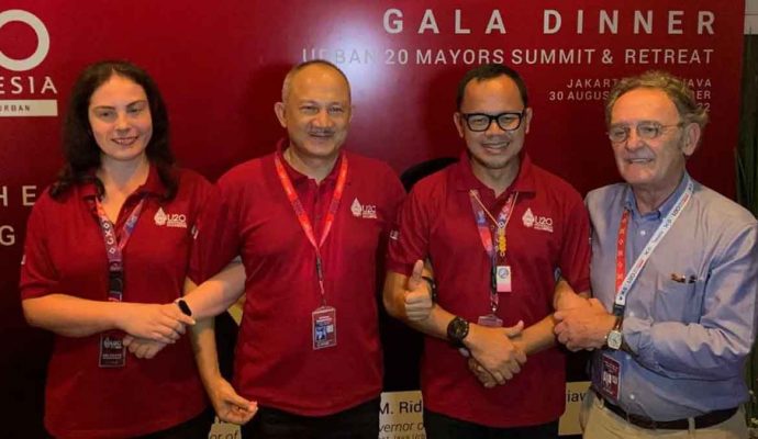 INILAHONLINE.COM, BOGOR — Wali Kota Bogor, Bima Arya bersama Sekda Provinsi Jawa Barat, Setiawan Wangsaatmaja menyambut rombongan Delegasi Urban 20 (U20) Mayors Retreat di Bogor Creative Center, Jalan Ir. H. Juanda, Kota Bogor, Kamis (1/9/2022).