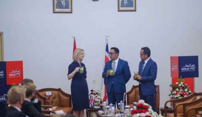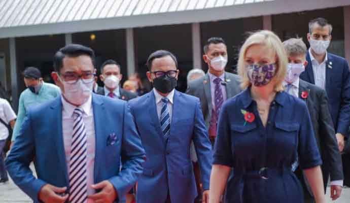 INILAHONLINE.COM, BOGOR — Wali Kota Bogor, Bima Arya bersama Gubernur Jawa Barat, Ridwan Kamil menerima kunjungan Menteri Luar Negeri Inggris, Elizabeth Truss di Bogor Creative Center (BCC), Jalan Ir. H. Juanda, Kota Bogor, Jumat (12/11/2021).