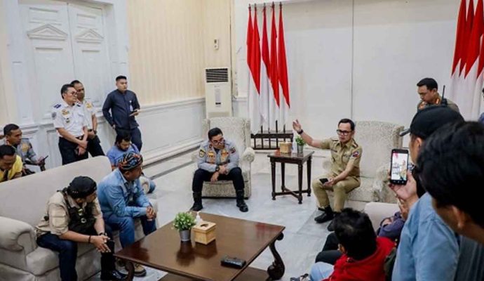 INILAHONLINE.COM, BOGOR — Wali Kota Bogor Bima Arya menerima pengemudi dan pemilik angkutan kota (angkot) yang melakukan aksi unjuk rasa di halaman Balaikota Bogor, Senin (17/4/2023). Peserta aksi meminta Wali Kota untuk segera memberlakukan tarif pada Biskita Transpakuan karena dinilai berdampak terhadap penurunan penumpang angkot.