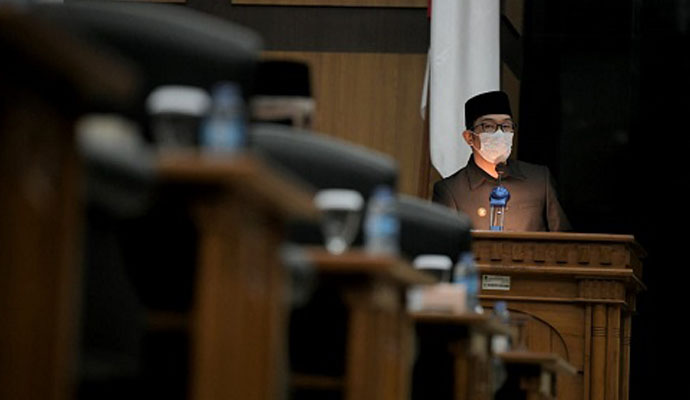 Oleh karena BOR di Jabar sudah turun, Gubernur Ridwan Kamil akan mengusulkan pemerintah pusat untuk memberlakukan kembali pengetatan skala mikro.(Humas Jabar/Frida)