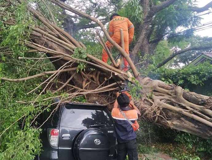 “Pohon tumbang timpa mobil parkir hingga rusak berat,” kata Priyantna, seperti dilansir onediginews grup siberindo.co, Senin (2/11/2020).