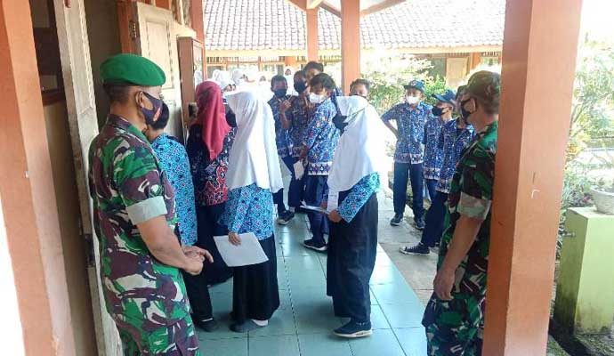 Danramil Bumiayu Kapten Armed Jupriadi menjelaskan, SMPN 03 Langkap menjadi sasaran vaksinasi karena merupakan sektor potensial cluster penyebaran covid-19.