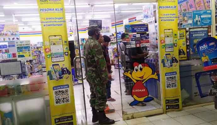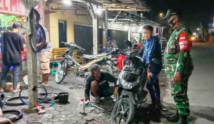 Sambil melakukan patroli mandiri maupun gabungan dengan Polri serta Satpol PP di tempat publik, Babinsa memberikan himbauan serta teguran bagi warga yang tak memakai masker.