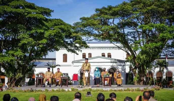 INILAHONLINE.COM, BOGOR — Jajaran Pemerintah Kota Bogor mengawali 2022 dengan briefing staff di Alun Alun, Senin (3/1/2022). Dalam rapat yang dipimpin Wali Kota Bogor Bima Arya, jajaran diminta untuk mewaspadai virus Covid-19 varian omicron yang saat ini kasusnya mulai terjadi penambahan di Tanah Air.