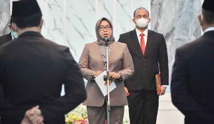 INILAHONLINE.COM, CIBINONG — Bupati Bogor, Ade Yasin melakukan pengambilan sumpah jabatan dan pelantikan pejabat eselon II lingkup Pemerintah Kabupaten (Pemkab) Bogor, kepada 7 pejabat eselon II yang dilaksanakan di Ruang Serbaguna I, Setda Kabupaten Bogor, Selasa (25/1/2022).