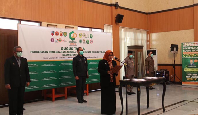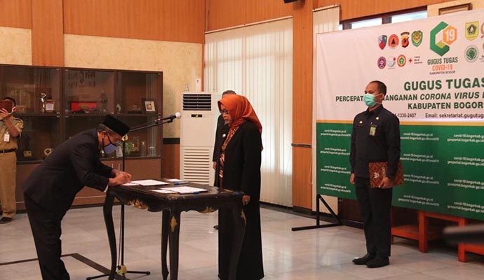 Mengisi kekosongan dibeberapa perangkat daerah, Bupati Bogor Ade Yasin melantik dan mengambil sumpah jabatan Pejabat Struktural Eselon II dan Pejabat Fungsional Ahli Utama dilingkungan Pemerintah Kabupaten Bogor di Pendopo Bupati, Senin (27/7/2020).
