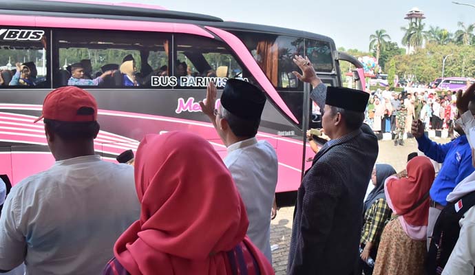 “Selamat jalan, semoga menjadi haji mabrur sert diridhoi Allah. Ingat juga bawa nama baik Kabupaten Bogor di sana,” kata Burhan.