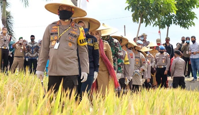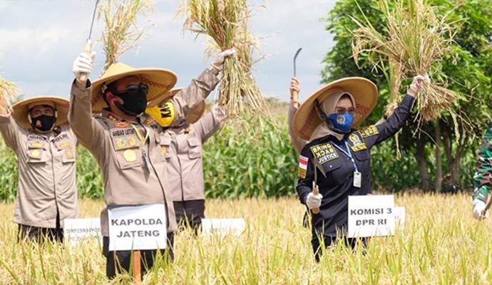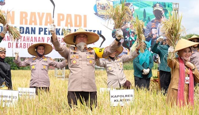Sesuai instruksi Presiden Republik Indonesia Ir. H. Joko Widodo, TNI/Polri harus ikut dalam ketahanan pangan khususnya peternakan dan perikanan maka pagi ini Kapolda Jawa Tengah Irjen Pol Ahmad Luthfi kunjungi Kabupaten Klaten untuk melaksanakan program kerja Pencanangan Kampung Siaga Candi, penaburan benih ikan, panen raya padi dan panen ikan di Wilayah Hukum Polres Klaten, Senin (20/7).