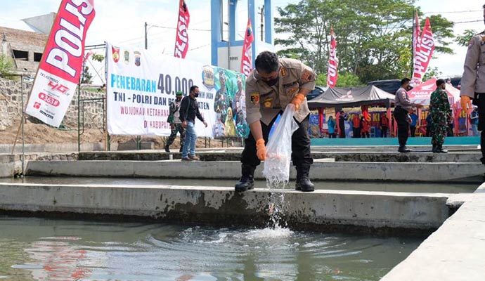 Selanjutnya Irjen Pol Ahmad Lutfi menuju tempat penebaran benih ikan sejumlah 40.000 ekor