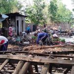 Pasca Bencana Angin Puting Beliung, Masyarakat Bersihkan Puing-puing Rumah Roboh bersama Anggota Koramil Baureno
