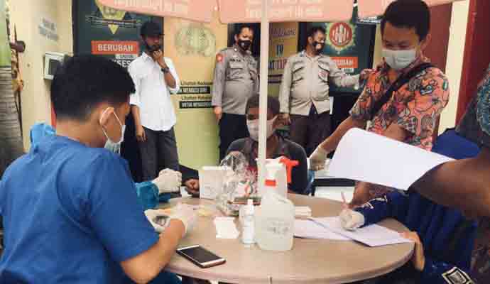 Rapid Test tersebut dilakukan petugas dari Puskesmas Somba Opu pada Jumat siang tadi (26/02/2021) di Polres Gowa. Para tahanan ini dilakukan Rapid Test sebagai upaya untuk mengantisipasi terjadinya penyebaran Covid-19 antar tahanaan di Rutan Kelas 1 Makassar.