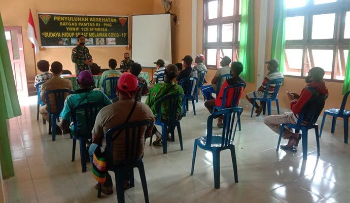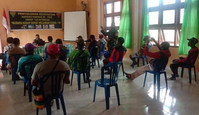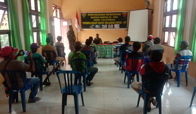 Dalam rangka mencegah dan memutus mata rantai penyebaran Covid-19, Satgas Pamtas RI-PNG Yonif 125/Simbisa memberikan penyuluhan kesehatan kepada aparat kampung dan perangkat RT di perbatasan dengan mengusung tema “Budaya Hidup Sehat Melawan Covid-19”.