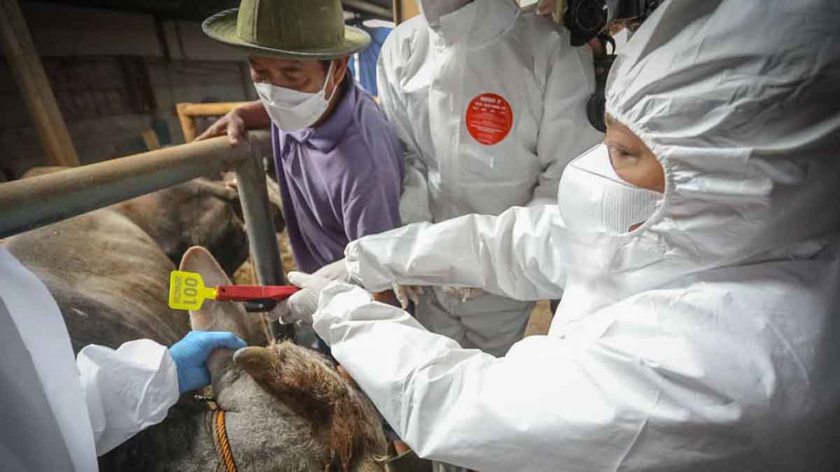 INILAHONLINE.COM, BANDUNG — Dinas Ketahanan Pangan dan Pertanian (DKPP) melaksanakan vaksinasi untuk pencegahan Penyakit Mulut Kuku (PMK) kepada hewan di Gang Lumbung 4, Babakan Ciparay, Senin (27/6/2022).