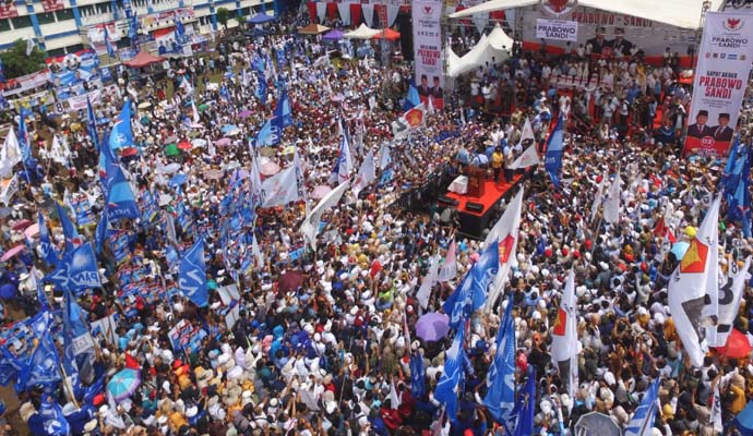 “Jangan lupa, pada tanggal 17 April nanti datang ke TPS, bawa ketupat lebaran,” kata Prabowo.