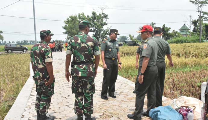 Selesai menerima paparan, di dampingi oleh Komandan Kodim 0803/Madiun, Tim Sergap Mabes TNI-AD langsung meninjau area persawahan Desa Ngadirejo, Kecamatan Wonoasri, Kabupaten Madiun guna melihat sejauh mana perkembangan pertumbuhan tanaman padi yang sudah siap panen ini.